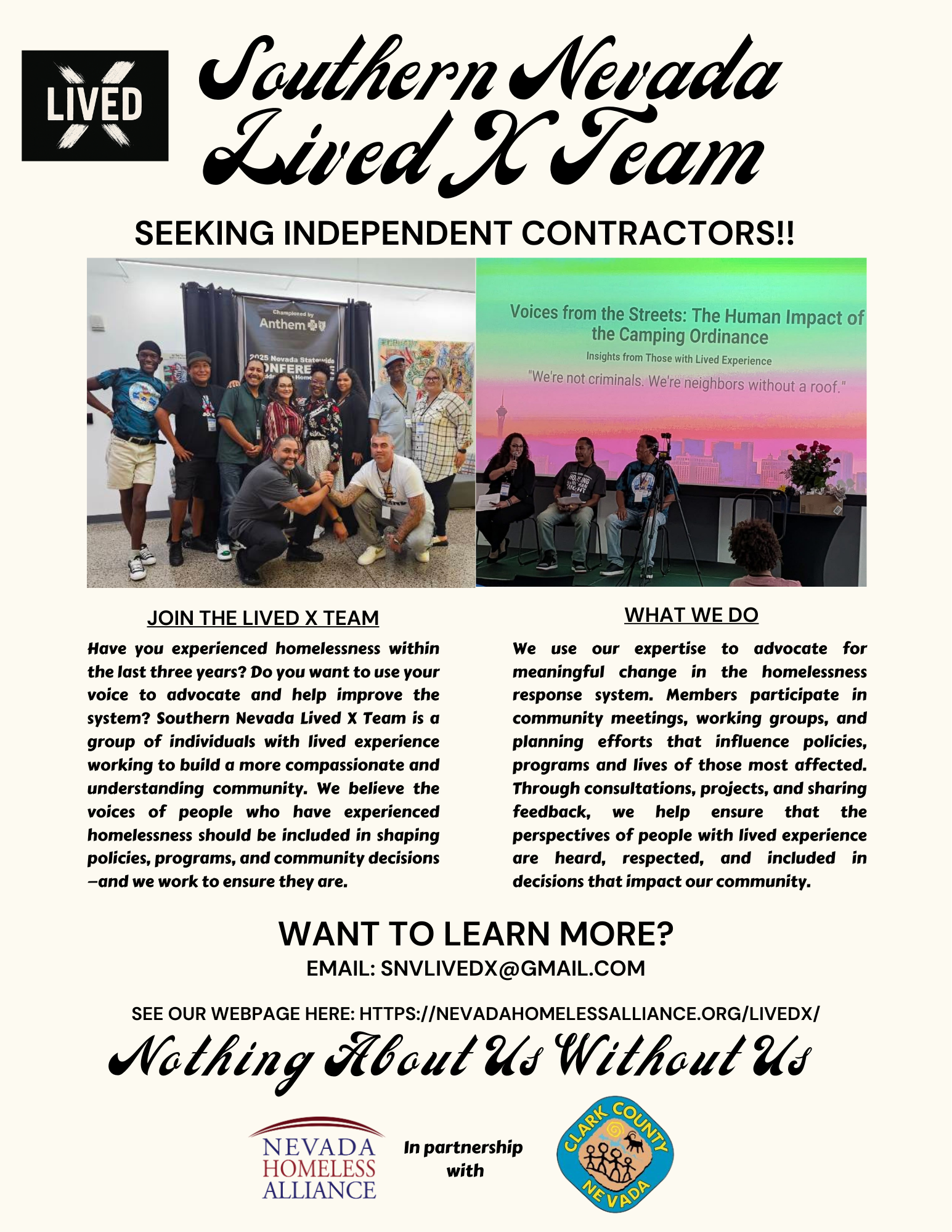 Seeking Independent Contractors: Southern Nevada Lived X Team